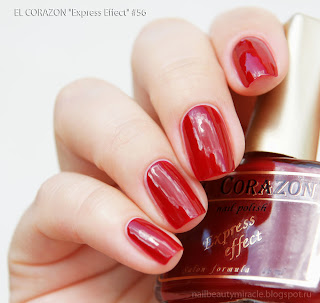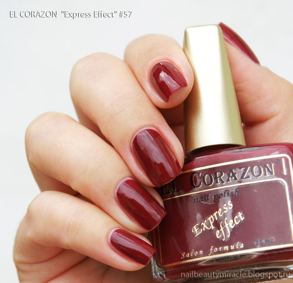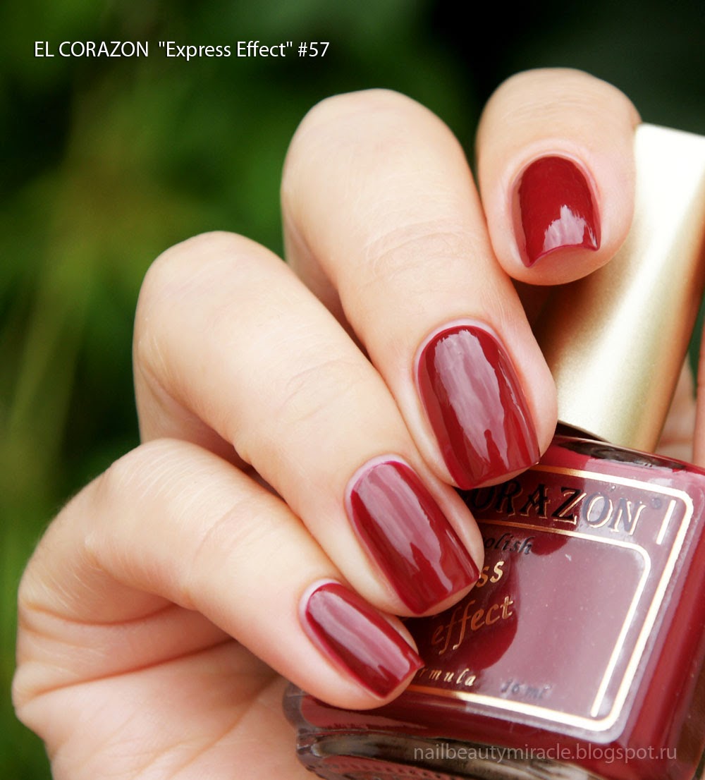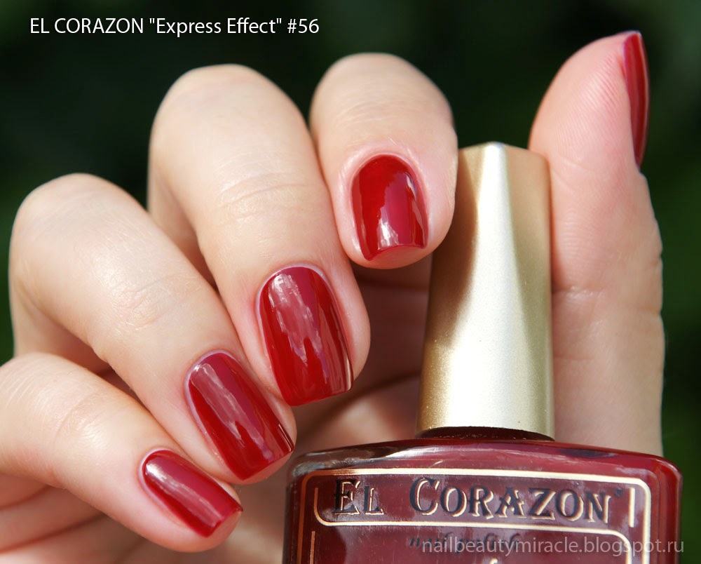 EL CORAZON "Express Effect" #56 - бордовый кармин с шикарнейшей желейной текстурой. Пигмент яркий и насыщенный, но даже два слоя могут просвечивать отросший край ногтя, хотя не критично. Финиш блестящий и зеркальный!!!