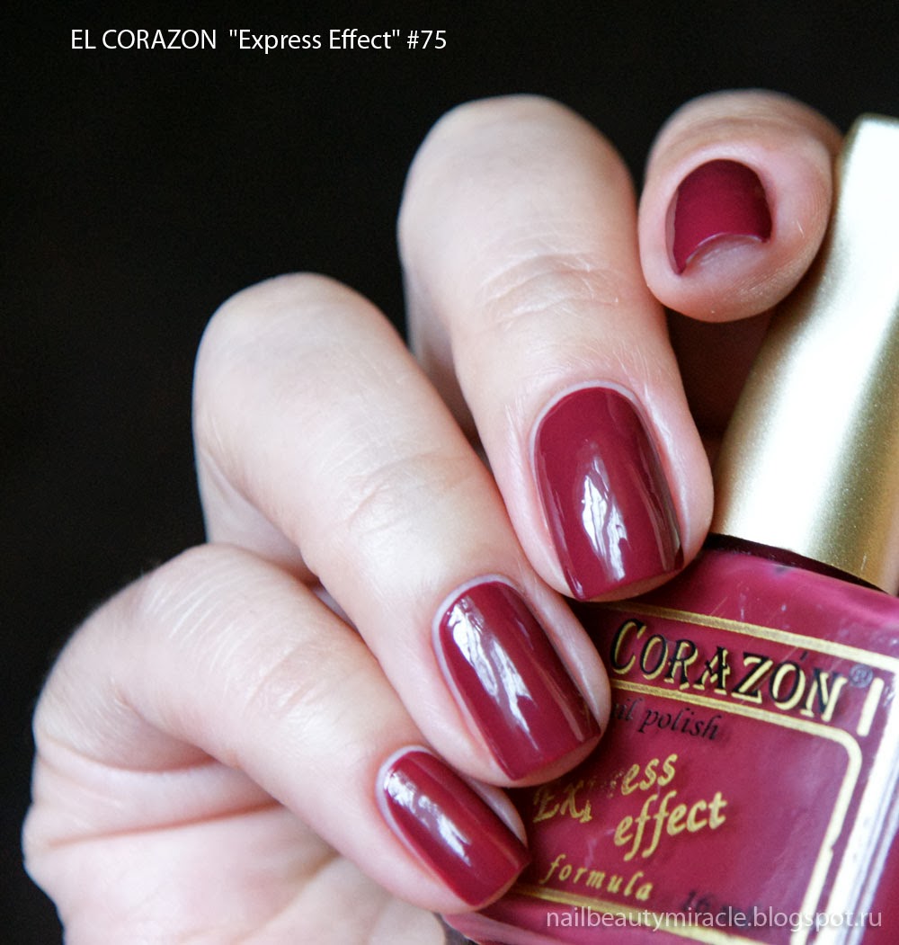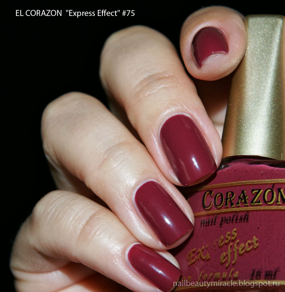 "Express Effect" - коллекция лаков EL CORAZON, одна из основных и самых первых. Включает в себя порядка ста классических оттенков различных текстур. Не смотря на такое разнообразие, все эти лаки объединяет скорость высыхания и стойкость покрытия. Все оттенки этой серии, что мне довелось опробовать, идеально сбалансированные по своей консистенции, пигментации, легко, ровно и точно наносятся и практически не нуждаются в корректировке.