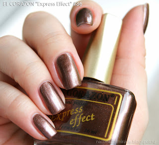 EL CORAZON "Express Effect" #86 - лак с металлической текстурой и серебряной, шиммерной пылью. Оттенок бронзово-каштановый. Пигмент очень плотный и насыщенный. Один слой в идеале.
