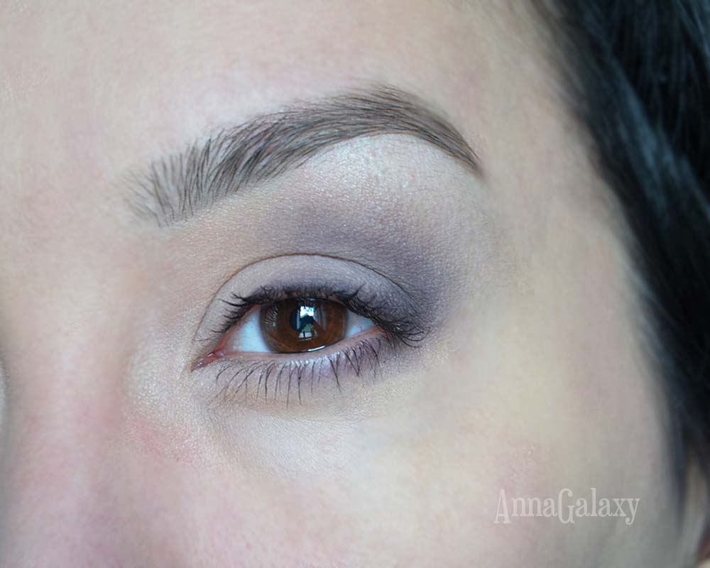 Матовые тени в фиолетовой гамме мне пришлись по душе. Оттенки оказались довольно прилично пигментированными. Они хорошо отдают цвет на веко, а также тени отлично держатся на базе до конца дня, не тускнеют и не скатываются, что не может не радовать.